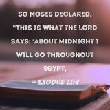 So Moses declared, "This is what the LORD says: 'About midnight I will go throughout Egypt,