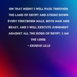 On that night I will pass through the land of Egypt and strike down every firstborn male, both man and beast, and I will execute judgment against all the gods of Egypt. I am the LORD.
