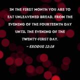 In the first month you are to eat unleavened bread, from the evening of the fourteenth day until the evening of the twenty-first day.