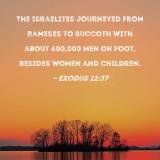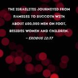The Israelites journeyed from Rameses to Succoth with about 600,000 men on foot, besides women and children.