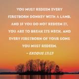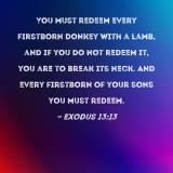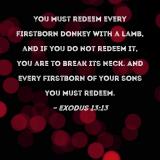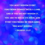 You must redeem every firstborn donkey with a lamb, and if you do not redeem it, you are to break its neck. And every firstborn of your sons you must redeem.