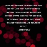 When Pharaoh let the people go, God did not lead them along the road through the land of the Philistines, though it was shorter. For God said, "If the people face war, they might change their minds and return to Egypt."
