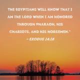 The Egyptians will know that I am the LORD when I am honored through Pharaoh, his chariots, and his horsemen."