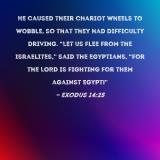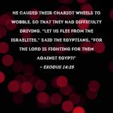 He caused their chariot wheels to wobble, so that they had difficulty driving. "Let us flee from the Israelites," said the Egyptians, "for the LORD is fighting for them against Egypt!"