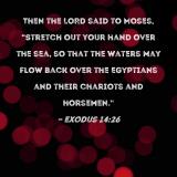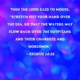 Then the LORD said to Moses, "Stretch out your hand over the sea, so that the waters may flow back over the Egyptians and their chariots and horsemen."
