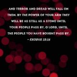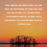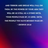 and terror and dread will fall on them. By the power of Your arm they will be as still as a stone until Your people pass by, O LORD, until the people You have bought pass by.