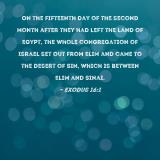 On the fifteenth day of the second month after they had left the land of Egypt, the whole congregation of Israel set out from Elim and came to the Desert of Sin, which is between Elim and Sinai.