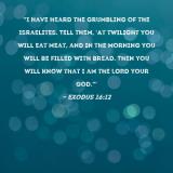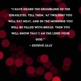 "I have heard the grumbling of the Israelites. Tell them, 'At twilight you will eat meat, and in the morning you will be filled with bread. Then you will know that I am the LORD your God.'"