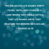 The Israelites ate manna forty years, until they came to a land where they could settle; they ate manna until they reached the border of Canaan.