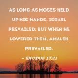 As long as Moses held up his hands, Israel prevailed; but when he lowered them, Amalek prevailed.