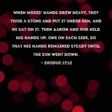 When Moses' hands grew heavy, they took a stone and put it under him, and he sat on it. Then Aaron and Hur held his hands up, one on each side, so that his hands remained steady until the sun went down.