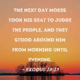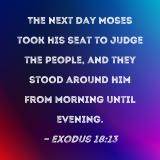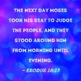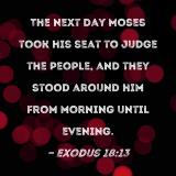 The next day Moses took his seat to judge the people, and they stood around him from morning until evening.
