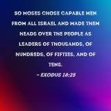 So Moses chose capable men from all Israel and made them heads over the people as leaders of thousands, of hundreds, of fifties, and of tens.