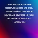 The other son was named Eliezer, for Moses had said, "The God of my father was my helper and delivered me from the sword of Pharaoh."