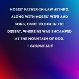 Moses' father-in-law Jethro, along with Moses' wife and sons, came to him in the desert, where he was encamped at the mountain of God.