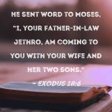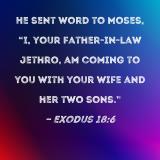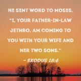 He sent word to Moses, "I, your father-in-law Jethro, am coming to you with your wife and her two sons."
