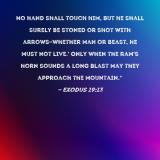 No hand shall touch him, but he shall surely be stoned or shot with arrows--whether man or beast, he must not live.' Only when the ram's horn sounds a long blast may they approach the mountain."