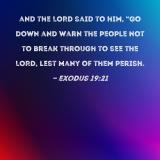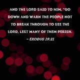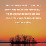 and the LORD said to him, "Go down and warn the people not to break through to see the LORD, lest many of them perish.