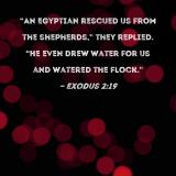 "An Egyptian rescued us from the shepherds," they replied. "He even drew water for us and watered the flock."