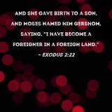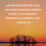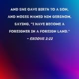 And she gave birth to a son, and Moses named him Gershom, saying, "I have become a foreigner in a foreign land."