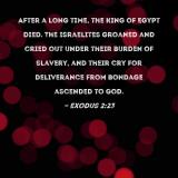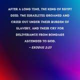 After a long time, the king of Egypt died. The Israelites groaned and cried out under their burden of slavery, and their cry for deliverance from bondage ascended to God.