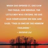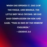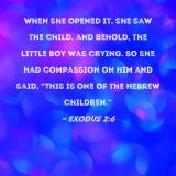 When she opened it, she saw the child, and behold, the little boy was crying. So she had compassion on him and said, "This is one of the Hebrew children."