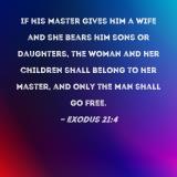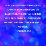 If his master gives him a wife and she bears him sons or daughters, the woman and her children shall belong to her master, and only the man shall go free.