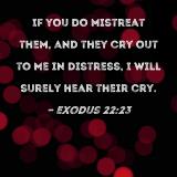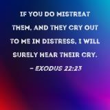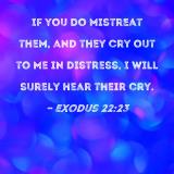 If you do mistreat them, and they cry out to Me in distress, I will surely hear their cry.