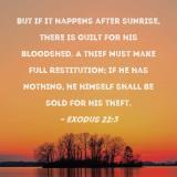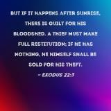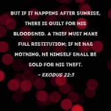 But if it happens after sunrise, there is guilt for his bloodshed. A thief must make full restitution; if he has nothing, he himself shall be sold for his theft.