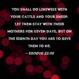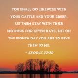 You shall do likewise with your cattle and your sheep. Let them stay with their mothers for seven days, but on the eighth day you are to give them to Me.