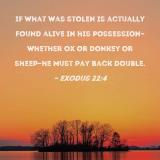 If what was stolen is actually found alive in his possession--whether ox or donkey or sheep--he must pay back double.