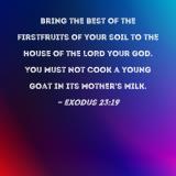 Bring the best of the firstfruits of your soil to the house of the LORD your God. You must not cook a young goat in its mother's milk.