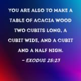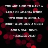 You are also to make a table of acacia wood two cubits long, a cubit wide, and a cubit and a half high.