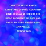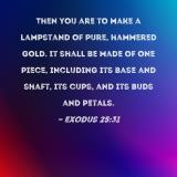 Then you are to make a lampstand of pure, hammered gold. It shall be made of one piece, including its base and shaft, its cups, and its buds and petals.