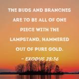 The buds and branches are to be all of one piece with the lampstand, hammered out of pure gold.