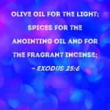 olive oil for the light; spices for the anointing oil and for the fragrant incense;