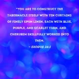 "You are to construct the tabernacle itself with ten curtains of finely spun linen, each with blue, purple, and scarlet yarn, and cherubim skillfully worked into them.
