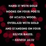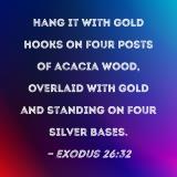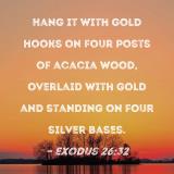 Hang it with gold hooks on four posts of acacia wood, overlaid with gold and standing on four silver bases.