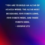 "You are to build an altar of acacia wood. The altar must be square, five cubits long, five cubits wide, and three cubits high.