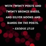 with twenty posts and twenty bronze bases, and silver hooks and bands on the posts.