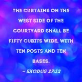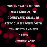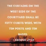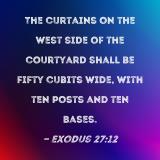 The curtains on the west side of the courtyard shall be fifty cubits wide, with ten posts and ten bases.