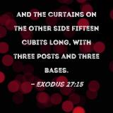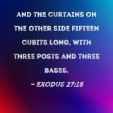 and the curtains on the other side fifteen cubits long, with three posts and three bases.