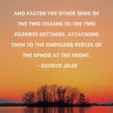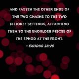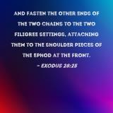 and fasten the other ends of the two chains to the two filigree settings, attaching them to the shoulder pieces of the ephod at the front.