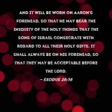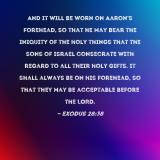 Pictures and Artwork And it will be worn on Aaron's forehead, so that he may bear the iniquity of the holy things that the sons of Israel consecrate with regard to all their holy gifts. It shall always be on his forehead, so that they may be acceptable before the LORD. |