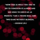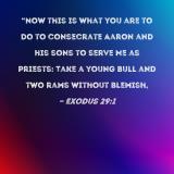 "Now this is what you are to do to consecrate Aaron and his sons to serve Me as priests: Take a young bull and two rams without blemish,