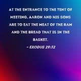At the entrance to the Tent of Meeting, Aaron and his sons are to eat the meat of the ram and the bread that is in the basket.