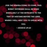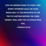For the generations to come, this burnt offering shall be made regularly at the entrance to the Tent of Meeting before the LORD, where I will meet you to speak with you.