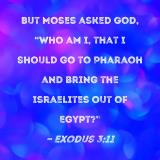 But Moses asked God, "Who am I, that I should go to Pharaoh and bring the Israelites out of Egypt?"