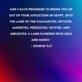 And I have promised to bring you up out of your affliction in Egypt, into the land of the Canaanites, Hittites, Amorites, Perizzites, Hivites, and Jebusites--a land flowing with milk and honey.'