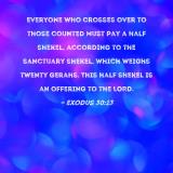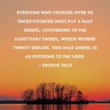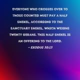Everyone who crosses over to those counted must pay a half shekel, according to the sanctuary shekel, which weighs twenty gerahs. This half shekel is an offering to the LORD.